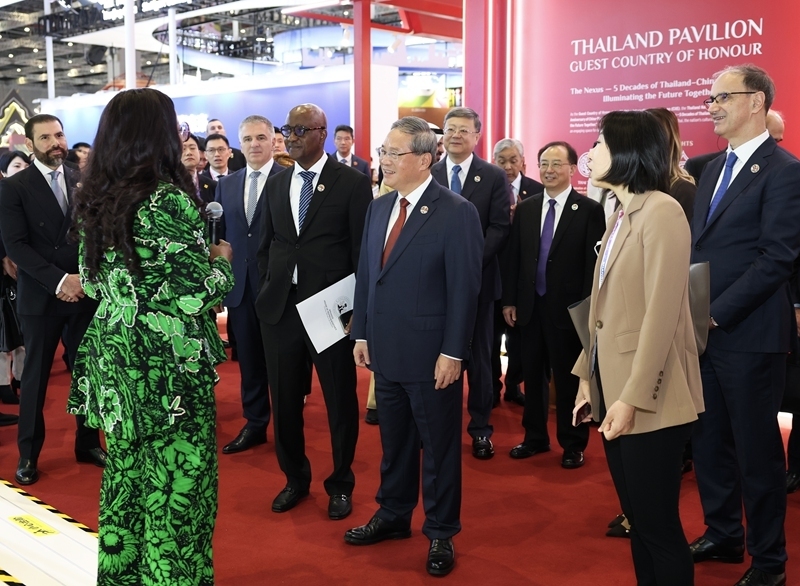 开幕式前,李强参观了企业展。开幕式后,李强同与会外国领导人共同巡馆。