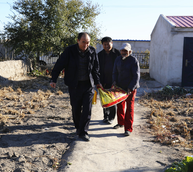 给贫困户送去大米和豆油