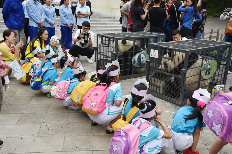 昨天,在虎园生活三年多的"嘉嘉""梦梦"离开长春返回四川参与2019年大熊猫繁殖计划,我们为它们举行了简短的欢送仪式,很多媒体、市民和小朋友们前来参加。