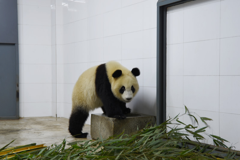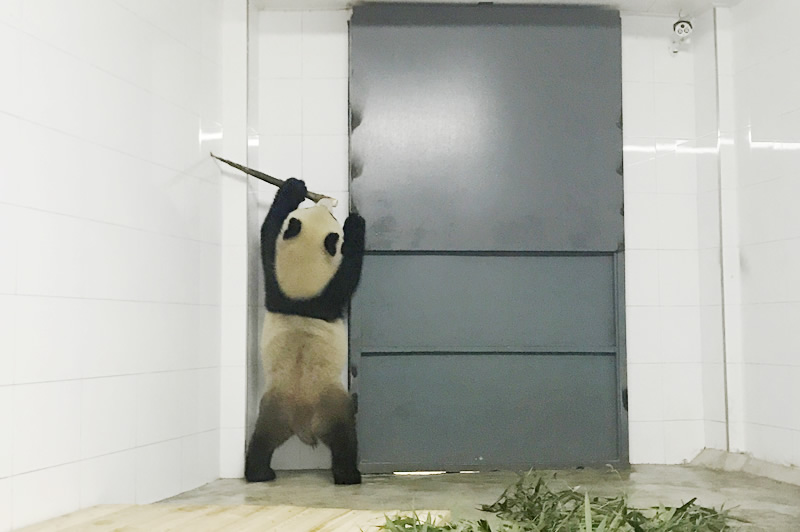 “初心”,2016年7月30日出生于中国大熊猫保护研究中心核桃坪基地,目前体重50公斤。“初心”喜欢黏人,小鸟依人,是个小淑女。