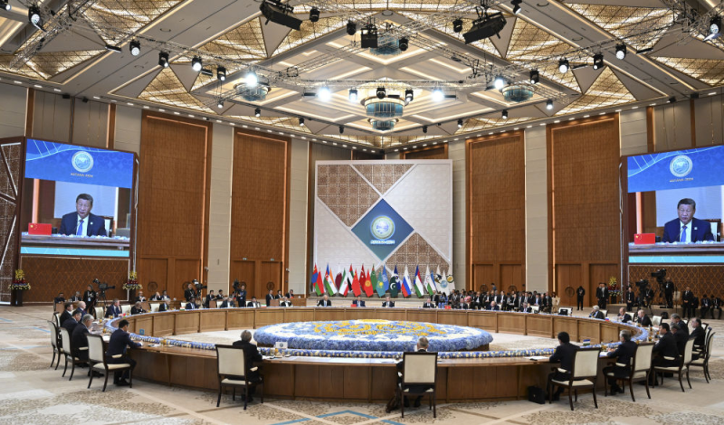 当地时间7月4日上午,国家主席习近平在阿斯塔纳独立宫出席上海合作组织成员国元首理事会第二十四次会议。