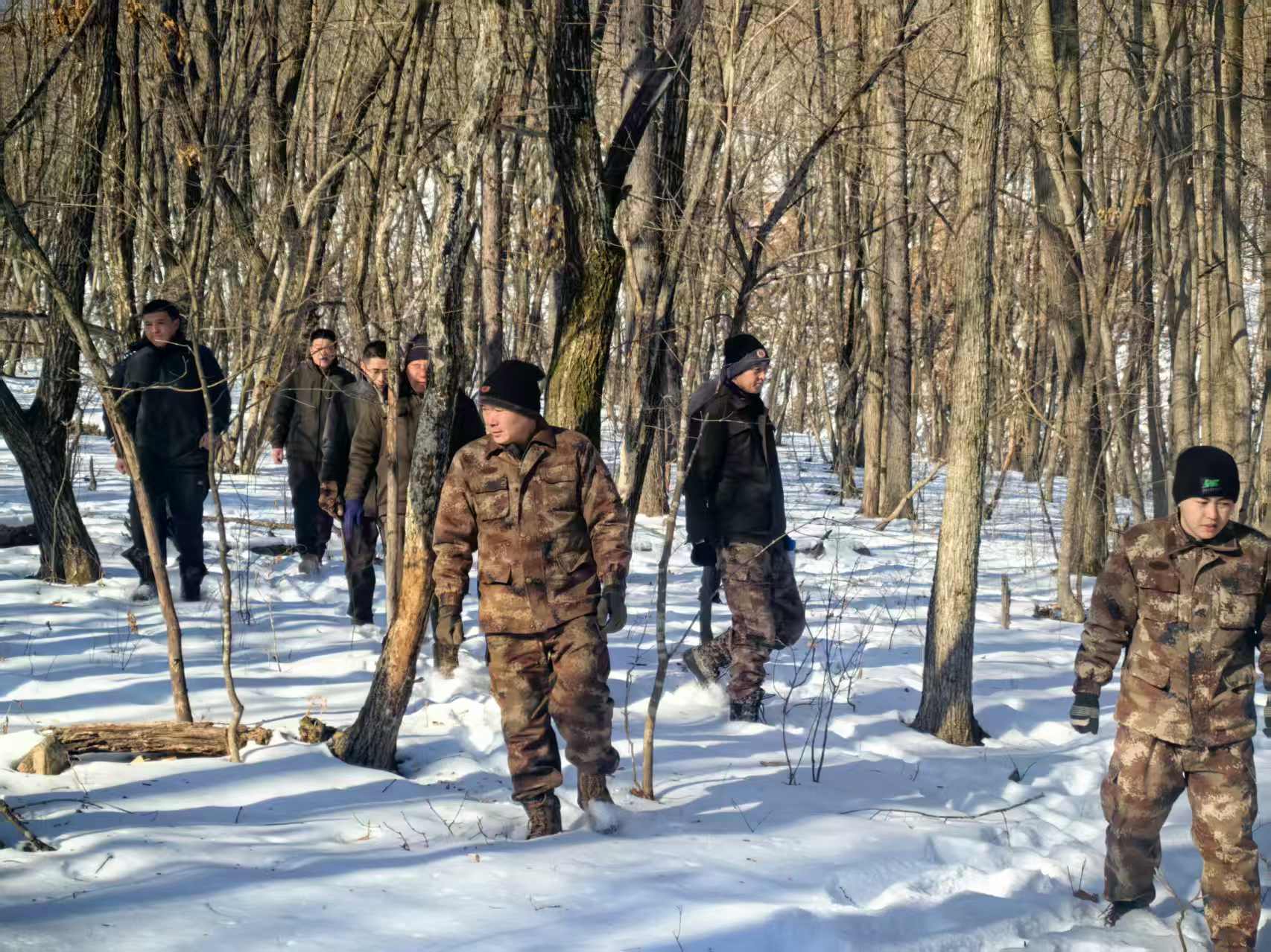 为切实加强森林资源保护和边境生态安全,1月29日,珲春林业有限公司马滴达林场、三道沟林场联合驻地部队、三道沟森林派出所、马滴达边境派出所及哈达门边境派出所,共同组建巡林普法联合行动队,深入辖区重点林地与村屯,开展巡林清套及野生动物保护宣传,全面筑牢森林资源安全屏障。