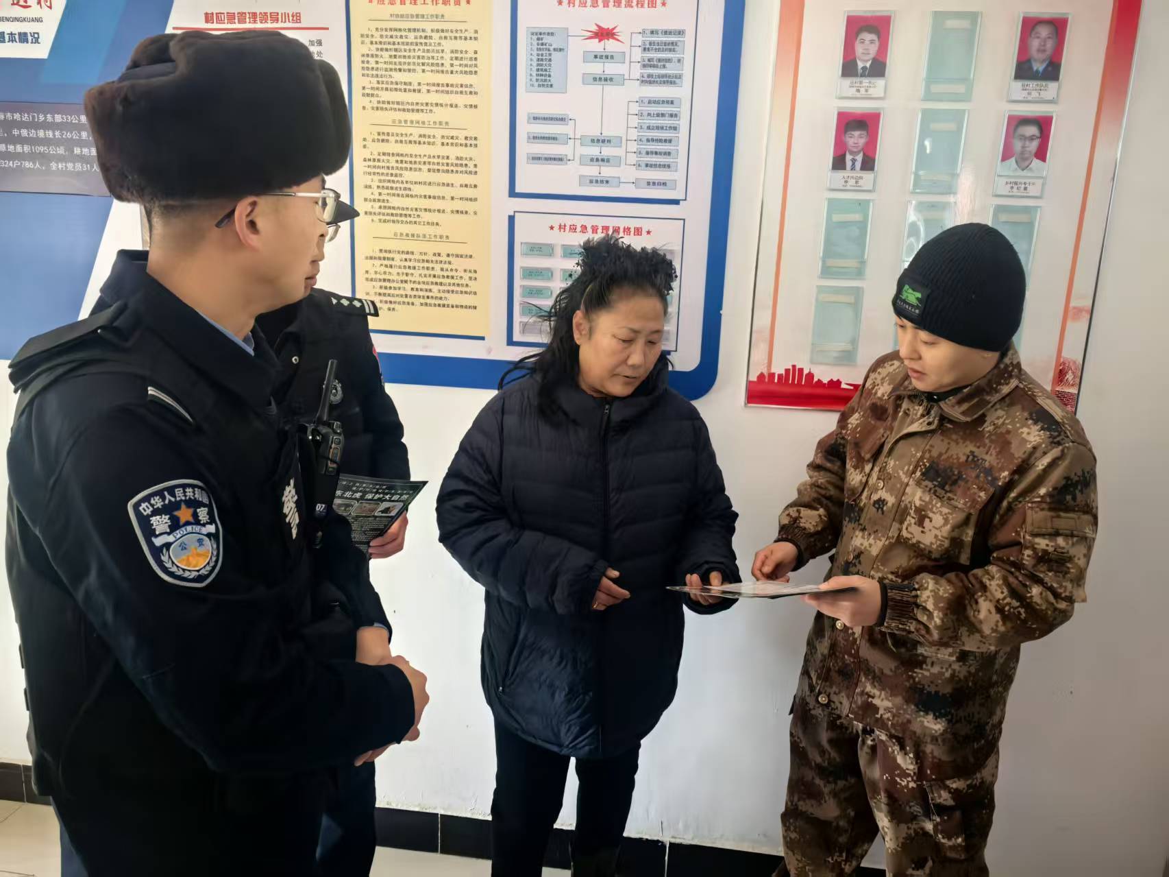 在巡查的同时,行动队还深入马滴达村、三道沟村、青山村开展普法宣传。通过发放宣传册,现场讲解等形式,向群众解读《森林法》《边境管理条例》及野生动植物保护相关法律法规,结合真实案例阐明盗伐滥伐、偷牧毁湿、非法狩猎等行为的法律后果,有效增强群众法治意识和生态保护自觉。