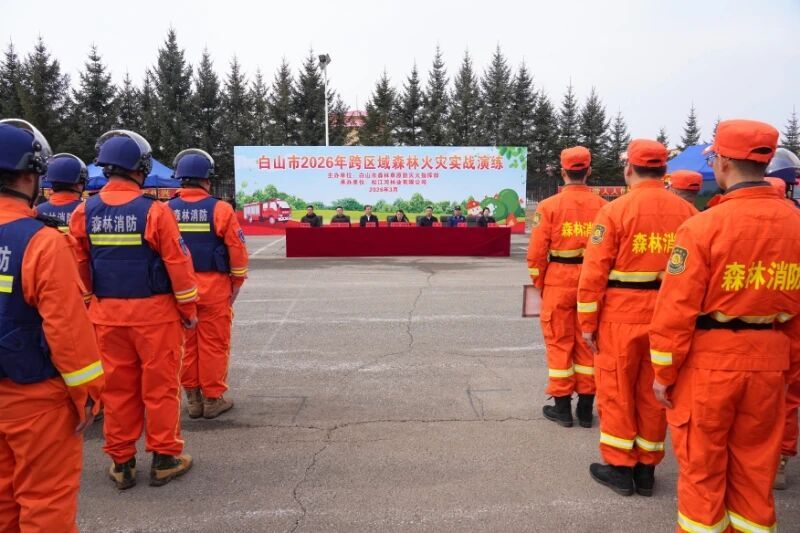 为筑牢森林生态安全屏障,检验跨区域联防联控实战效能,提升多部门协同处置能力,近日,白山市2026年跨区域森林火灾实战演练在松林公司国家森林公园举行。白山市委常委、常务副市长、市森防指总指挥王福泉,抚松县委副书记、县长、县森防指总指挥王鼎,松林公司党委书记、森防指总指挥胡建荣以及市、县森防指成员单位负责人,共同观摩此次演练。