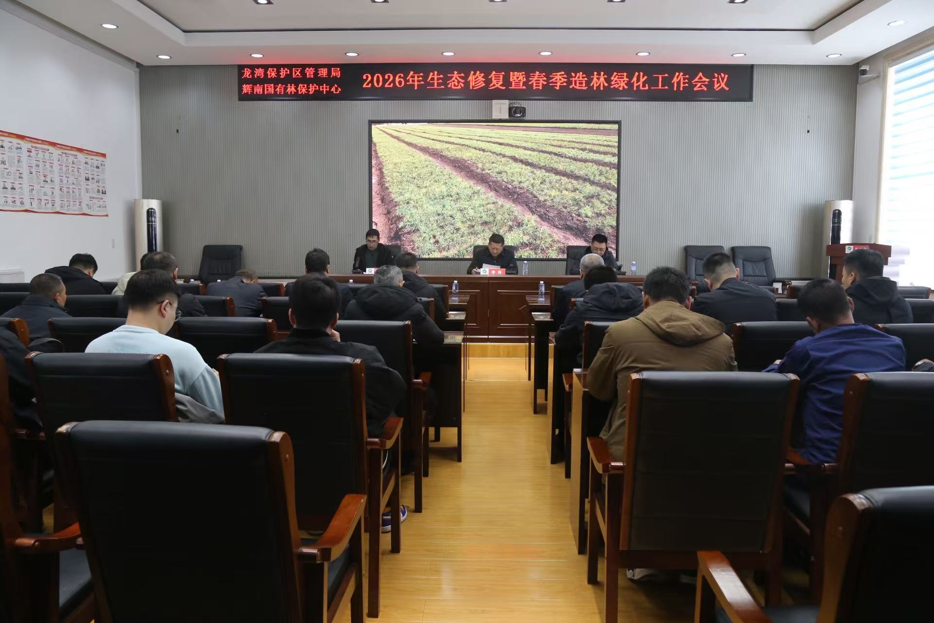 为全面做好2026年生态修复暨春季造林绿化工作,4月9日,龙湾保护局、辉南林保中心召开2026年生态修复暨春季造林绿化工作会议,局相关领导、生态修复科、科技和森防科、各管护站(保护站)主要领导、主管领导、营林技术员参加会议。