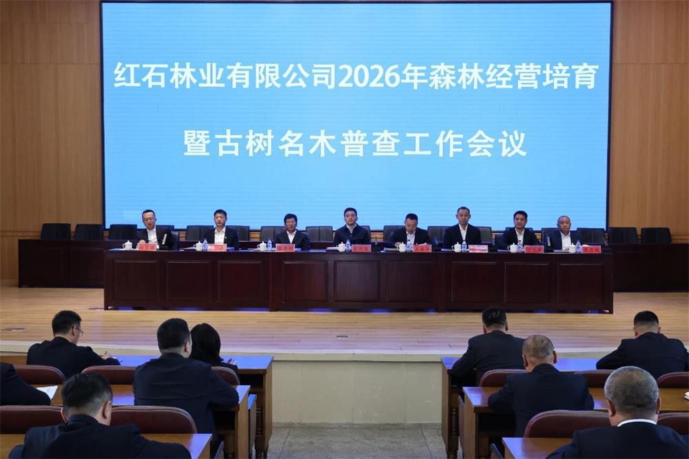 4月22日,红石林业有限公司召开2026年森林经营培育暨古树名木普查工作会议,全面贯彻落实省林草局、集团公司工作要求,对2026年森林经营培育和古树名木普查工作作出安排部署。公司党委书记、董事宋双林出席会议并讲话。公司领导班子成员、省林草局驻红石办事处负责人、基层单位及机关处室负责人、国有林技术服务中心各驻场监督站负责人、林场主管营林副场长参加会议。
