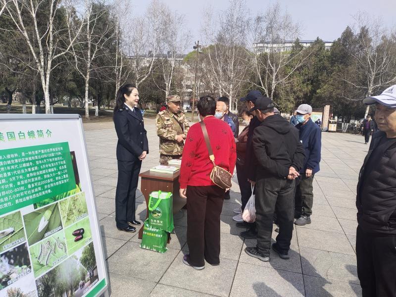 宣传活动以多样化形式深入推进。通过设置宣传展台、布设展板,向过往群众发放《吉林省林业有害生物防治条例》及配套宣传资料,并安排专业人员现场讲解美国白蛾、松材线虫病等重大林业有害生物的识别特征、传播途径以及科学防控方法,系统普及林业检疫相关法律法规,积极引导公众自觉抵制违法违规调运、使用松木等行为。