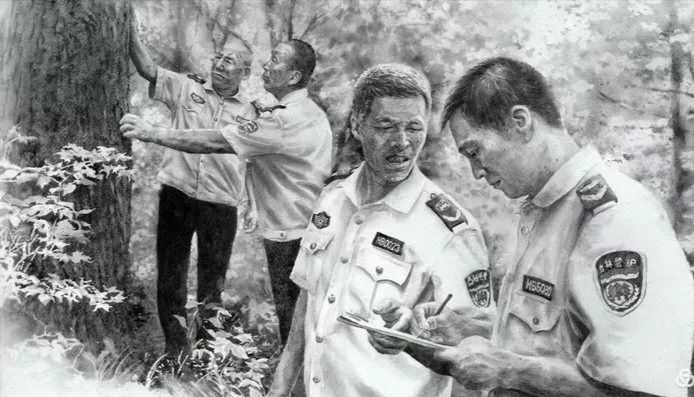 森林巡护(绘画:贾润潭)