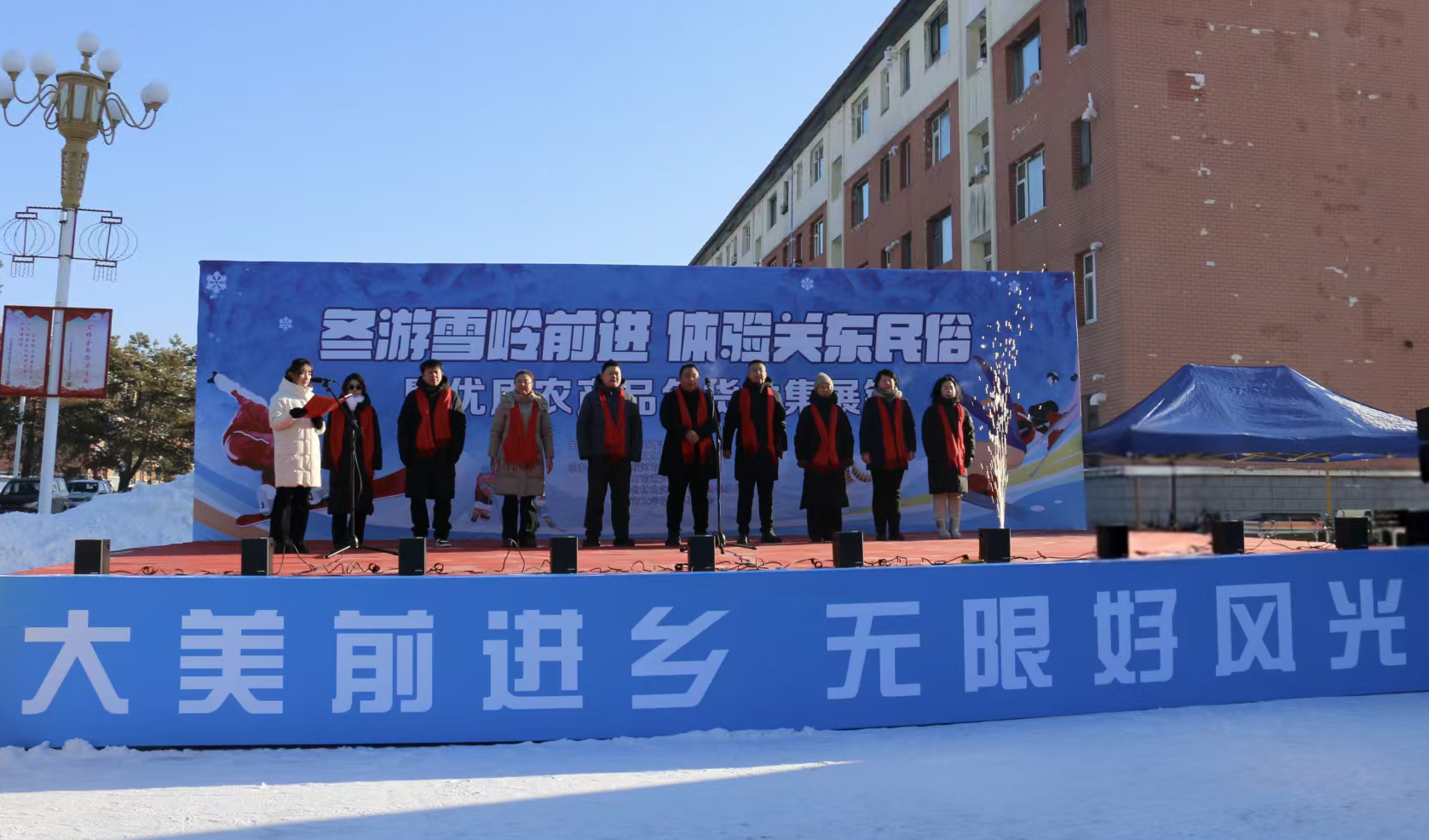 1月16日,“冬游雪岭前进,体验关东民俗”暨优质农产品年货大集展销活动在吉林省林业实验区国有林保护中心广场隆重开幕。此次活动由蛟河市委宣传部、蛟河市文化和广播电视旅游局主办,蛟河市前进乡政府、蛟河市文学艺术界联合会与吉林省林业实验区国有林保护中心(以下简称“保护中心”)共同协办,以冬日民俗为纽带,以林农特产为载体,打造了一场生态、文化与经济共荣的盛会。