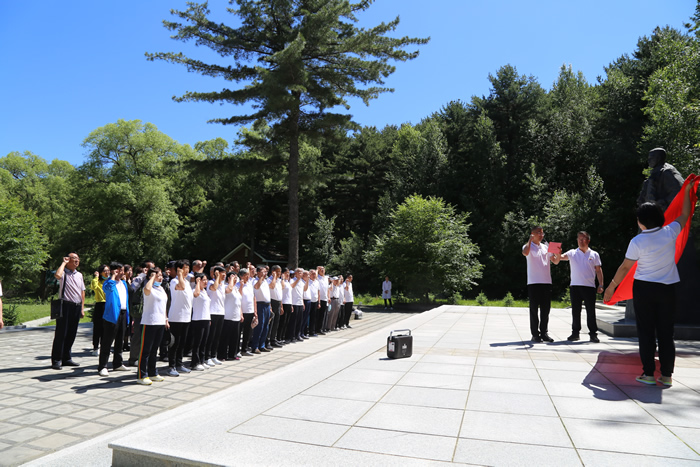 在党委办的组织下,大家乘车来到旱龙湾金伯阳烈士广场举行纪念活动,向抗联英雄金伯阳烈士默哀,表达对先烈的无限崇敬与怀念。