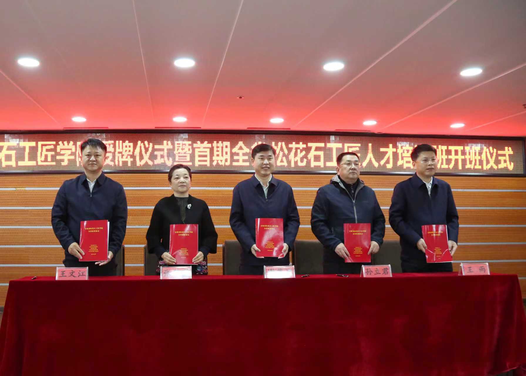 作为共建单位与承办方,学院联合吉林省总工会、吉林省文化和旅游厅、通化师范学院、江源区人民政府、白山市总工会及通化市总工会,聚焦全省松花石产业发展需求,以“匠心育人、技道并重”为导向,着力构建“政、校、企”协同育人模式。仪式现场,学院与省总工会、省文旅厅、通化师范学院、江源区人民政府五方签署合作框架协议,省总工会党组书记、常务副主席边境为学院授牌,并授予学院及通化师范学院“吉林省松花石工匠学院分院”牌匾。与会领导还实地考察了学院松花石培训基地,对学院在实训基地建设与产业对接等方面取得的成果给予肯定。