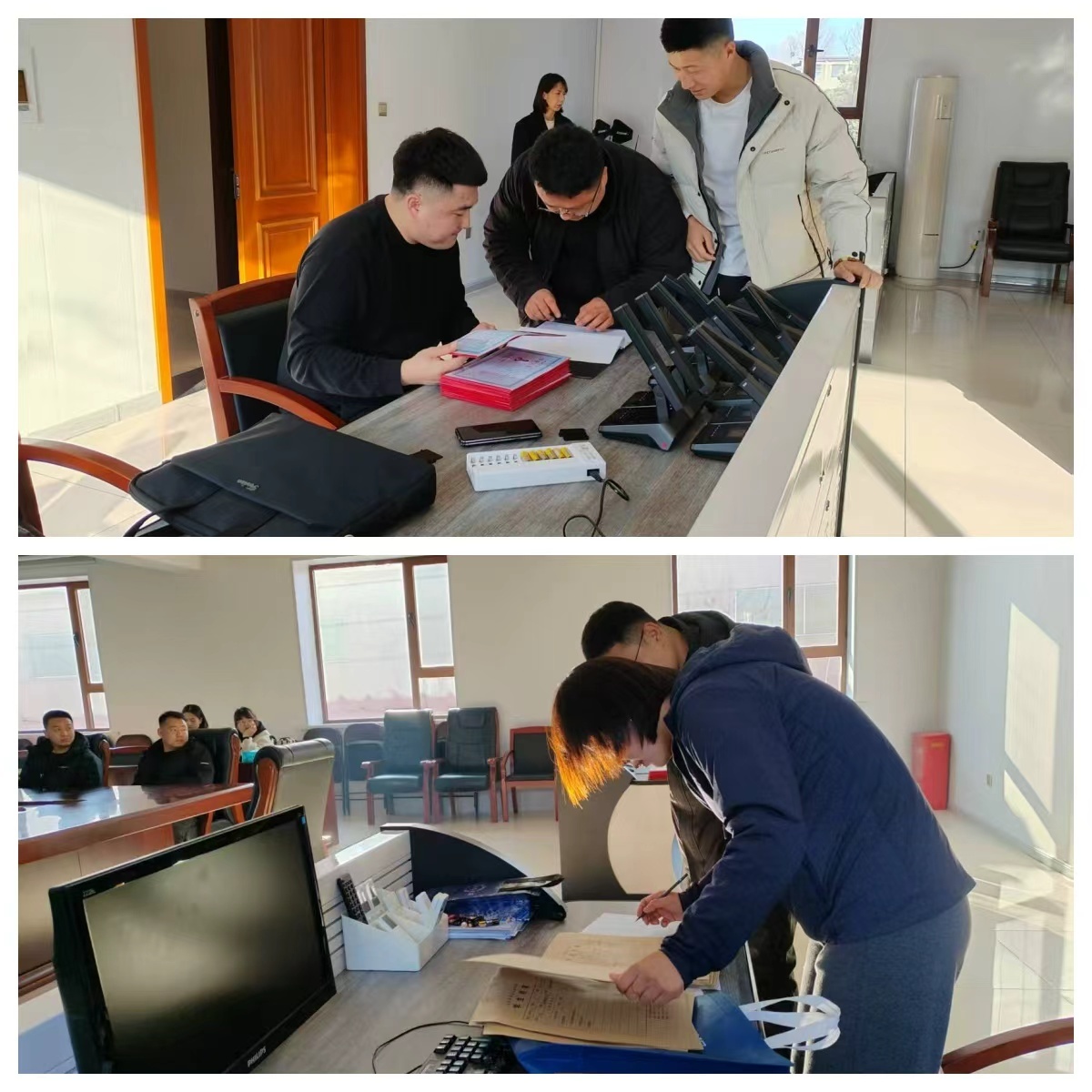 图为实习指导团队为2022级毕业学生颁发毕业证和移交档案现场