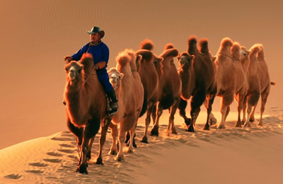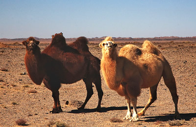 从前,人们以为骆驼背上的肉峰一定是一个贮水器,里面装满了水能够不断满足身体的需要。其实驼峰里贮存的并不是水,而是胶质脂肪,双峰驼的两个驼峰里足足可以贮存40千克的脂肪。艰苦的长途跋涉常使骆驼处在饥渴交迫的境地,这时奇异的驼峰脂肪便会逐渐起化学变化,氧化分解后供给骆驼体内所需要的营养、能量和水分。据估计,每100克脂肪在氧化时可以产生107克水,贮满脂肪的两座驼峰在不断氧化的过程中,就可以得40多升水。可见,驼峰并不是一个普通的蓄水池,而是一个化学蓄水池。最近科学研究发现,骆驼蓄水不只是依靠它的双峰,它的鼻子也是贮水的工具之一。骆驼的鼻腔很大,有着很大的呼吸面,每当它呼出气后,鼻腔便会把混在空气中的水分重新吸收回来。这是因为骆驼长管状的呼吸道能使呼出的气体冷却到体温之下,这样就能保存其中70%的水分。难怪这种有着沙漠之舟美称的动物,在浩瀚的沙漠里行走数日也平安无事。