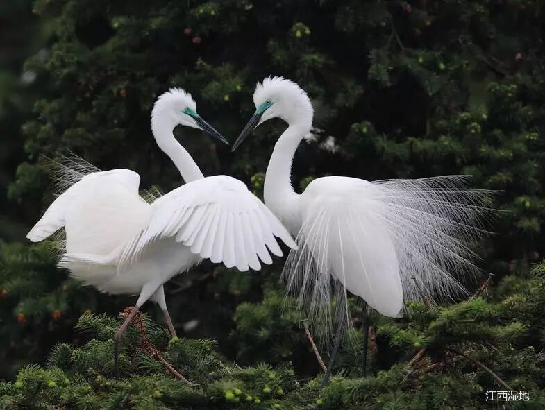 小白鹭(鹳形目,鹭科),夏候鸟,省级重点保护鸟类,全长约61cm。体羽白色繁殖期枕部具有两根狭长的长矛状飘羽,前颈和背着生蓑羽,背部蓑羽常长过尾,嘴黑,但冬季下嘴变黄,脚黑,但趾绿黄色。栖息于低海拔的沼泽、湖泊、稻田等湿地,以鱼、泥鳅、蚯蚓、虾、蛙、昆虫及昆虫幼虫等为食。