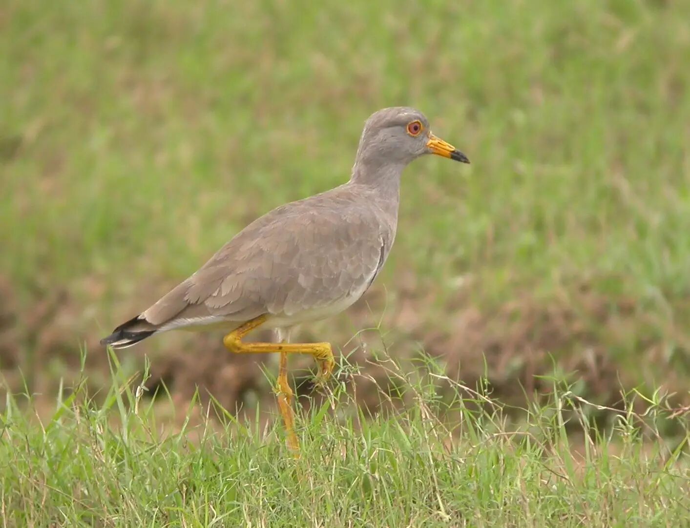 灰头麦鸡(鸻形目,鸻科),夏侯鸟,省级重点保护鸟类,体长约35cm。上体棕褐色,头颈部灰色,眼周黄色,翼尖、胸带及尾部横斑黑色,翼后余部、腰、尾及腹部白色。亚成鸟似成鸟但褐色较浓而无黑色胸带。栖栖于近水的开阔地带、河滩、稻田及沼泽,以蚯蚓、昆虫、螺类等为食。