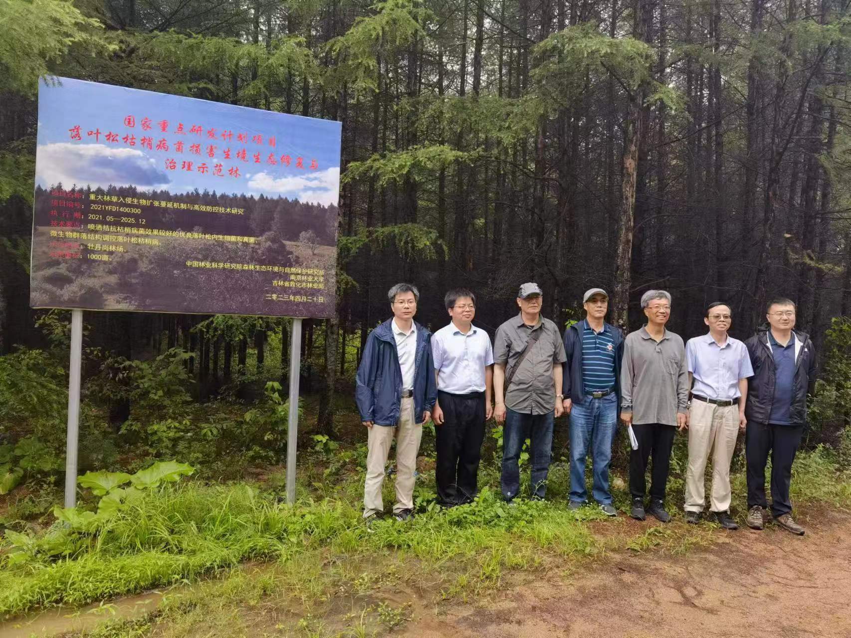 2023年6月27日上午,国家重点研发计划项目“重大林草入侵生物扩张蔓延机制与高效防控技术研究(202IYFD1400300)”牵头单位中国林业科学研究院森林生态环境与自然保护研究所组织专家对项目所属“基于细菌群落调控的落叶松枯梢病菌损害生境生态修复与治理示范”专题的示范内容进行现场查验(地点位于吉林省敦化市林业局牡丹岗林场),并于下午专家组在敦化市京华酒店三楼召开了基于细菌/真菌群落调控的落叶松枯梢病菌损害生境生态修复与治理示范现场查定会议。