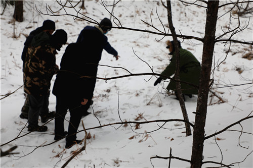 当日下午,李志海与市林业局动保科工作人员以及农业农村局等相关单位工作人员立即驱车前往现场。据王效健讲,前一天晚上发现了一头牛没有回牛棚,第二天一早就开始寻找,始终也没发现牛的踪迹。上午10点左右,在五道村北山的耕地里发现了星星点点的血迹,顺着血迹进入树林,在林间的一块草甸子里找到了牛的剩余部分,还发现了清晰可见的老虎爪印。